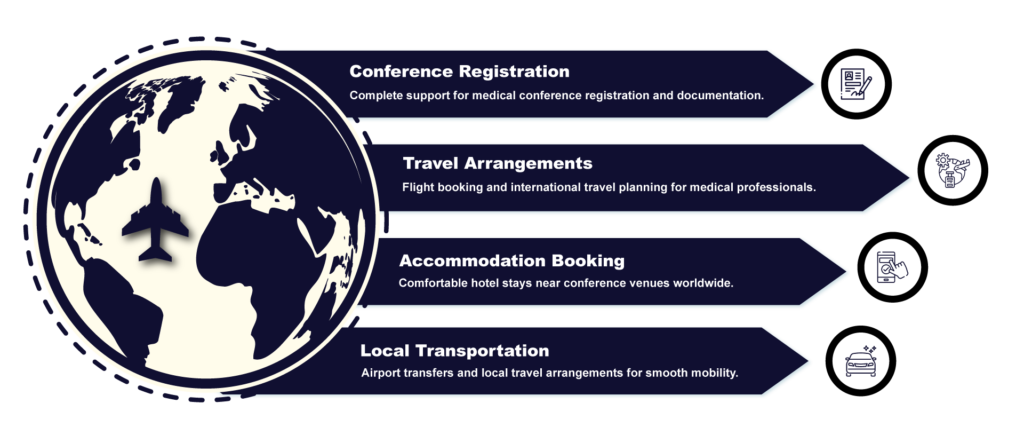 We provide structured travel solutions for medical conferences, healthcare seminars, and international medical events across global destinations. Our services support doctors, healthcare professionals, research teams, and medical organizations attending conferences for learning, collaboration, and knowledge exchange.