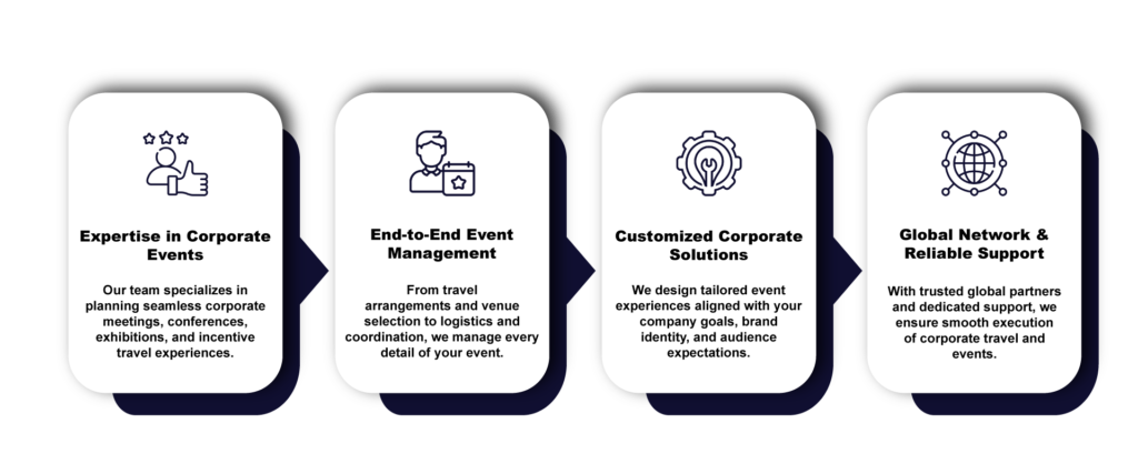 We provide structured travel solutions for meetings, incentives, conferences, and corporate events across global destinations. Our services are designed to support companies, organizations, and corporate teams attending international events for networking, collaboration, and business development.