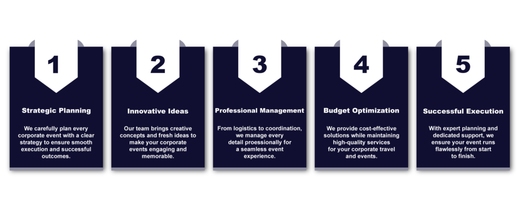 Our goal is to simplify corporate event travel and MICE coordination, allowing businesses to focus on productive meetings, successful events, and valuable professional connections without worrying about travel logistics.